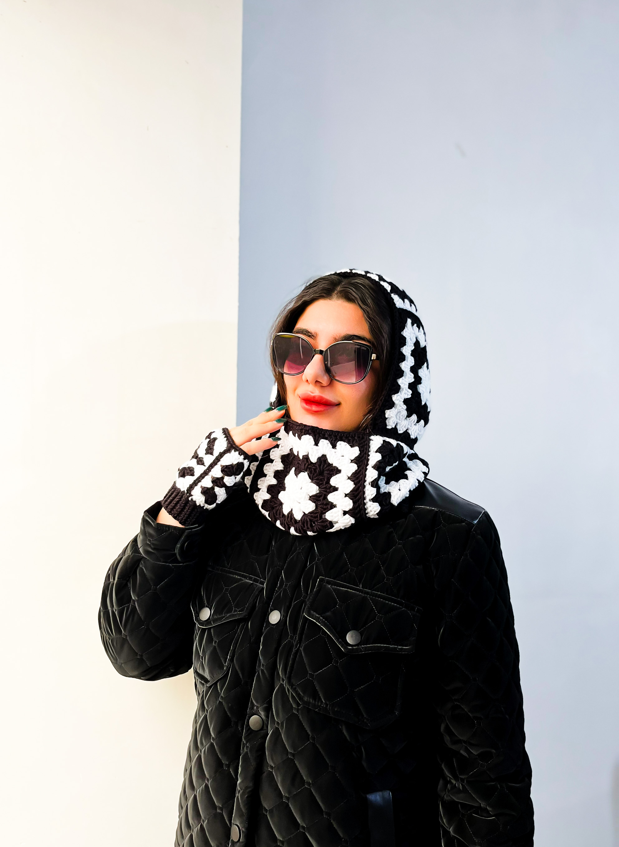 ست بالاکلاوا و دستکش سیاه سفید زنانه قلاب بافتی دستبافت۶۹۵٬۰۰۰ 17%